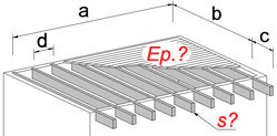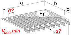 Largeur a, portée b, porte-à-faux c, épaisseur Ep du plancher